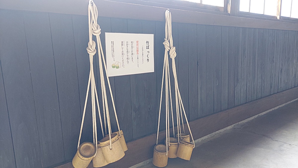 館内には、昔懐かしい竹ぽっくりも置かれていて、思わず童心に返るひととき。