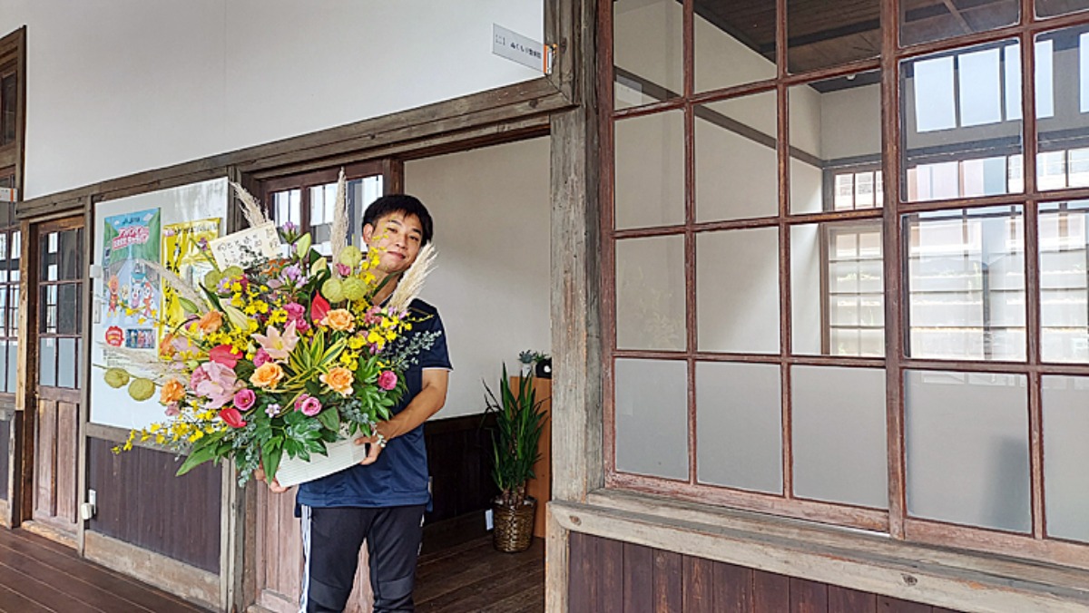 花束を抱える先生の笑顔に、未来へのエールが重なって見えました。
