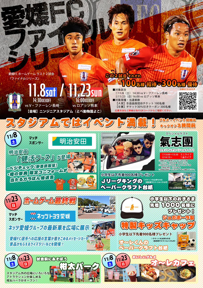 【愛媛FC】11/8(土)・11/23(日)|愛媛FCファイナルシリーズ!招待キャンペーンや豪華イベント