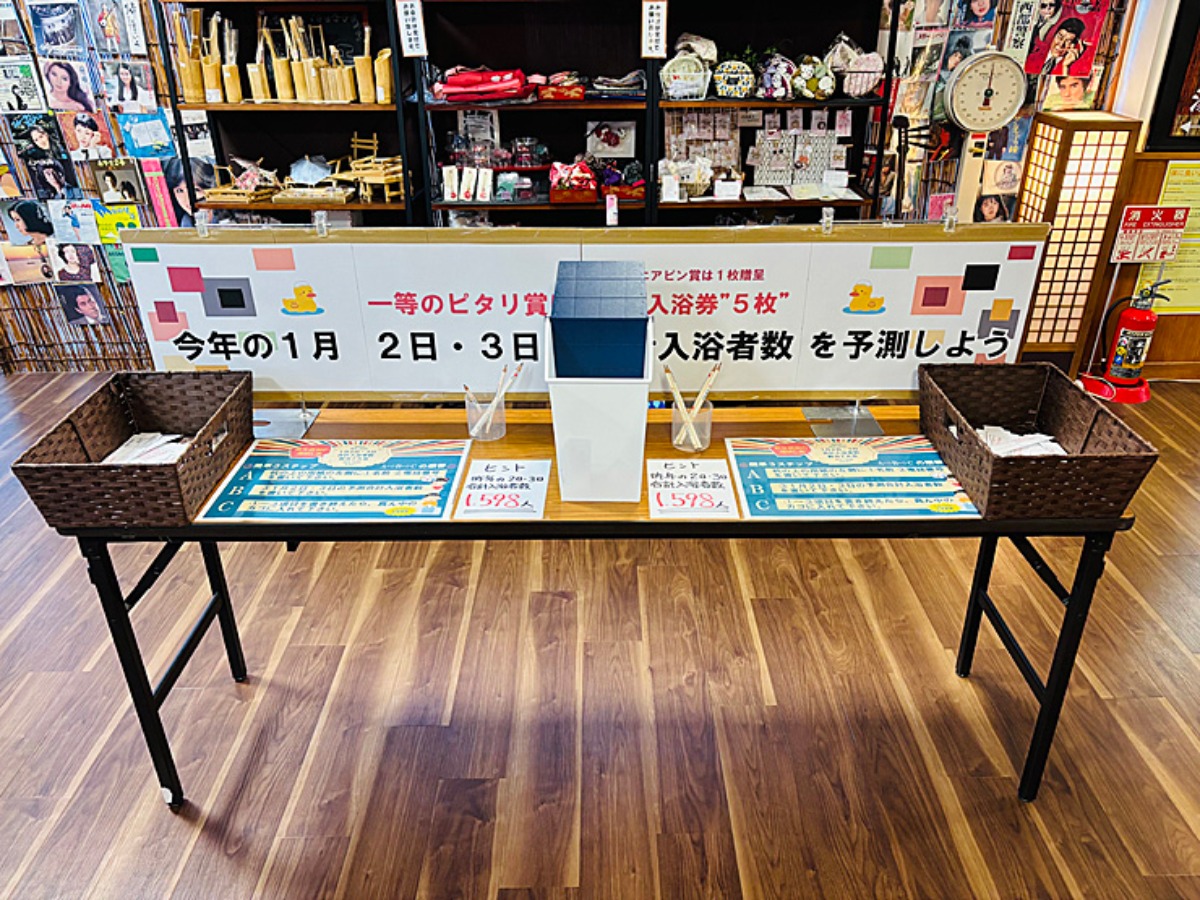 毎年1月2日からは正月イベントを開催しています。大・小の福袋が販売される他、1月2日・3日の入浴者数当て大会を実施。ピタリ賞は無料入浴券5枚、ニアピン賞には無料入浴券1枚が貰えるので、ぜひチャレンジして景品を手に入れてくださいね。