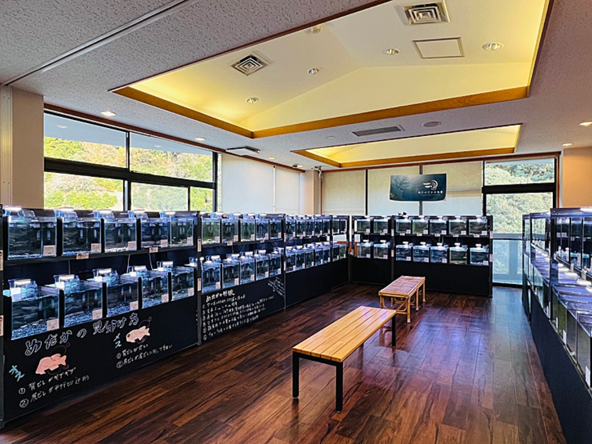 2階には、70種類のめだかが集結する「鈍川めだか水族館」があります。たくさんの水槽が並ぶ様は圧巻。入浴料のみで鑑賞することができるので、ぜひ覗いてみてくださいね。夏にはカブトムシ小屋も登場しますよ。