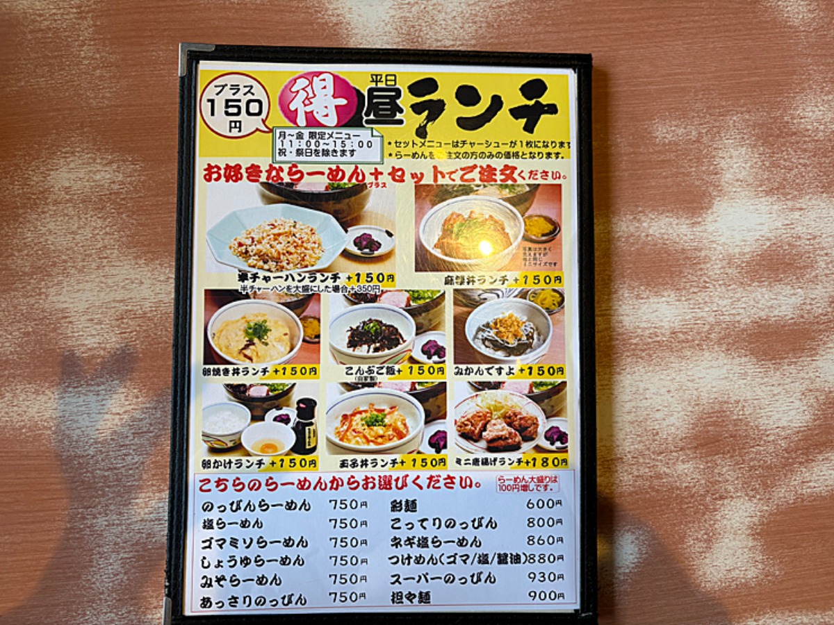 平日のランチ時にはラーメン代プラス150円で食べられるお得なセットもありました。