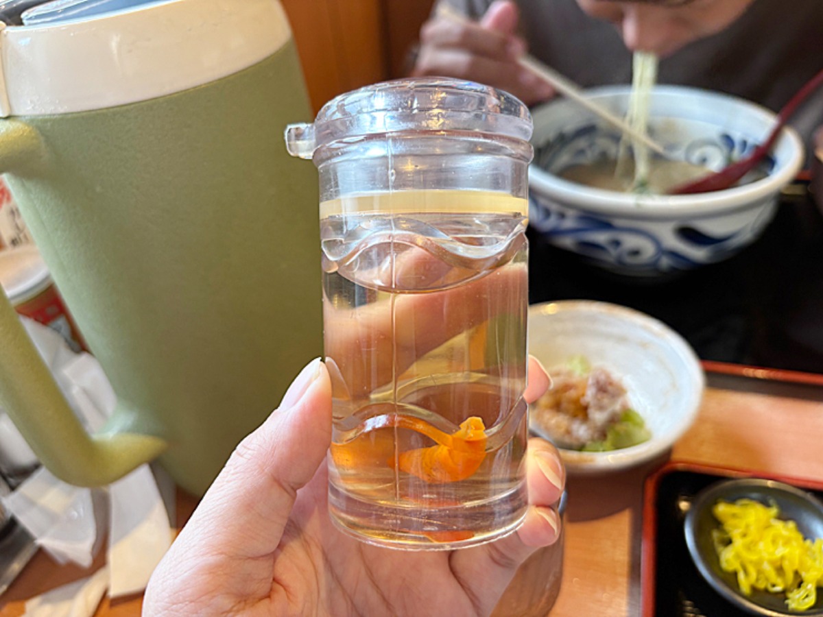 かけた後にスープの飲んでみると、ほんのり酸味が加わりました。お酢です!