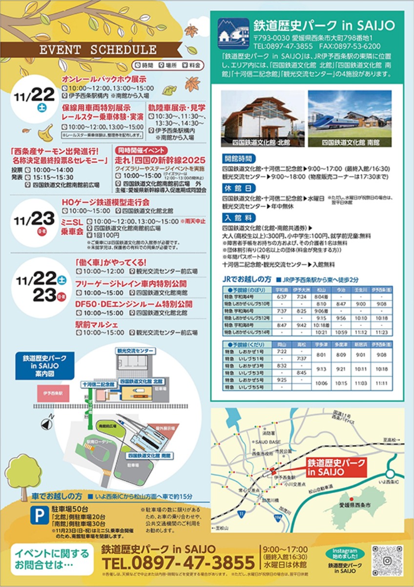 【四国鉄道文化館2025年11月イベント】 鉄道の不思議と歴史が満載! 非公開車両や秋限定体験が楽しめる注目企画(愛媛/西条市)