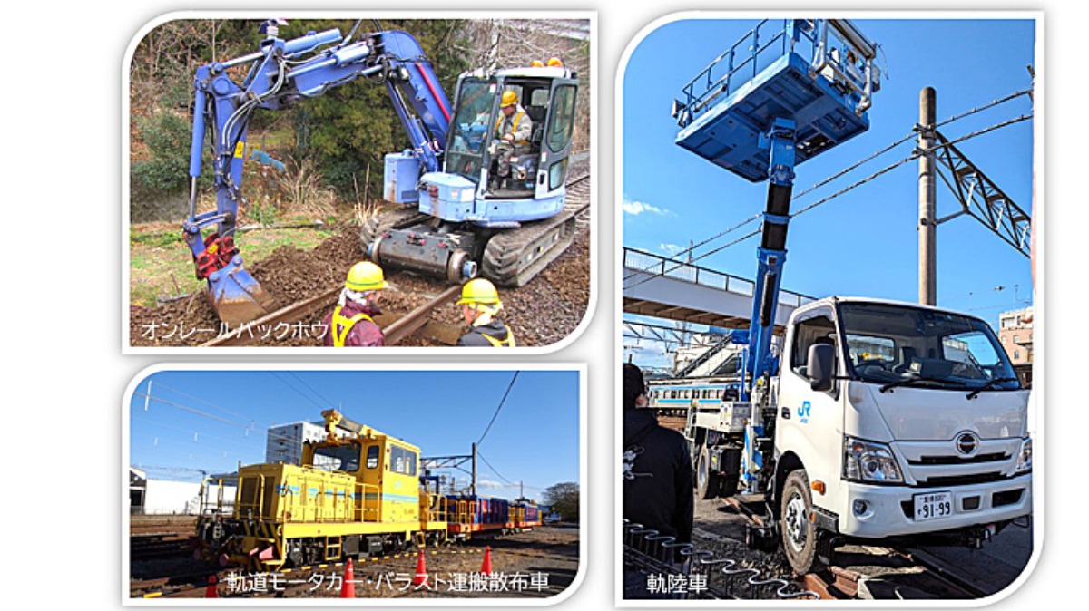 線路工事に欠かせない車両が集合します。