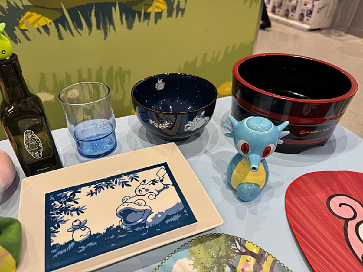 うどん桶やタッツーの醤油差し、リラックスしたヤドンの角皿など、どれもかわいらしいデザインでした。