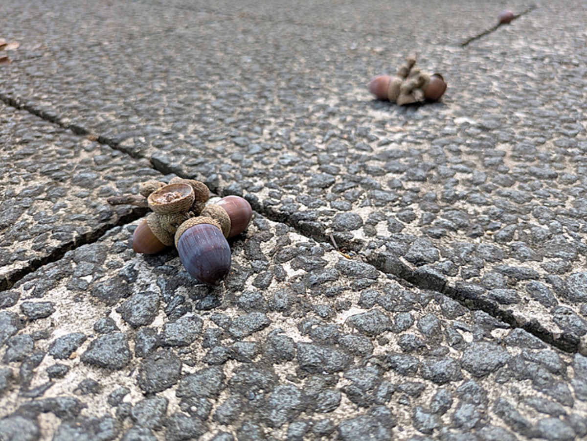 写真を撮っている間にも、コツン、コツン、と、どんぐりくんが落ちてくる音が聞こえてきました。
