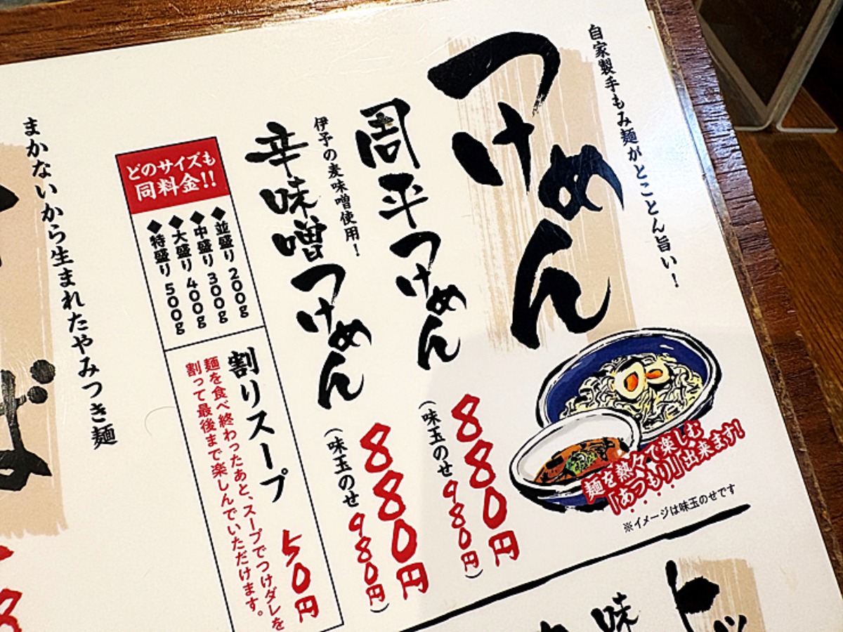 ここに来るといつも油そばに惹かれてしまうのですが、たまに気分転換をする際はこちらの「つけ麺」をチョイスします(といっても、かなり稀ではありますが…)。