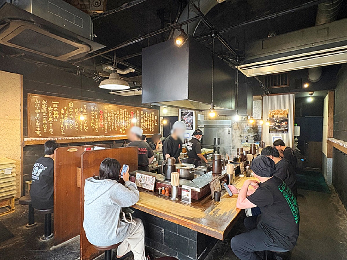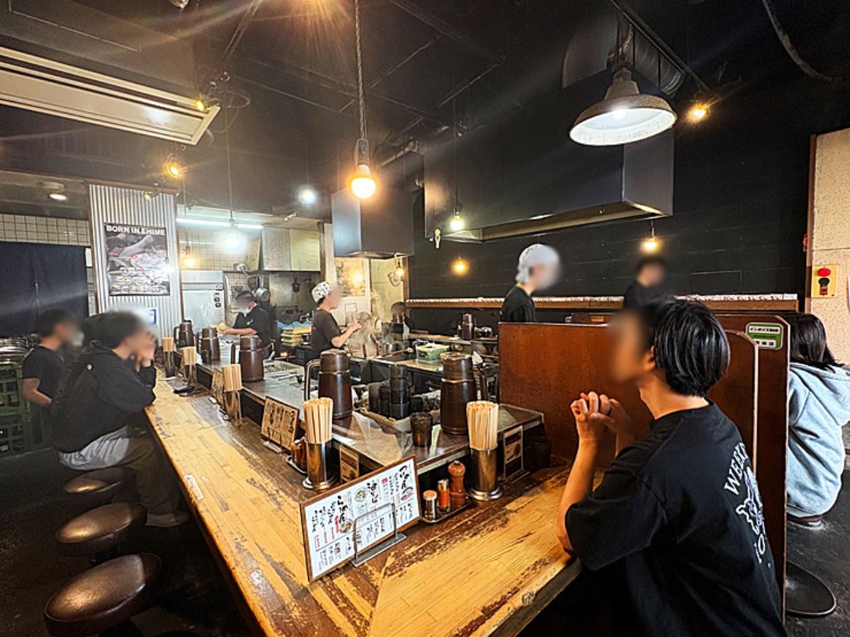 座席はカウンターのみで約20席ほど。お隣にも気を配りつつ譲り合って座りましょう。