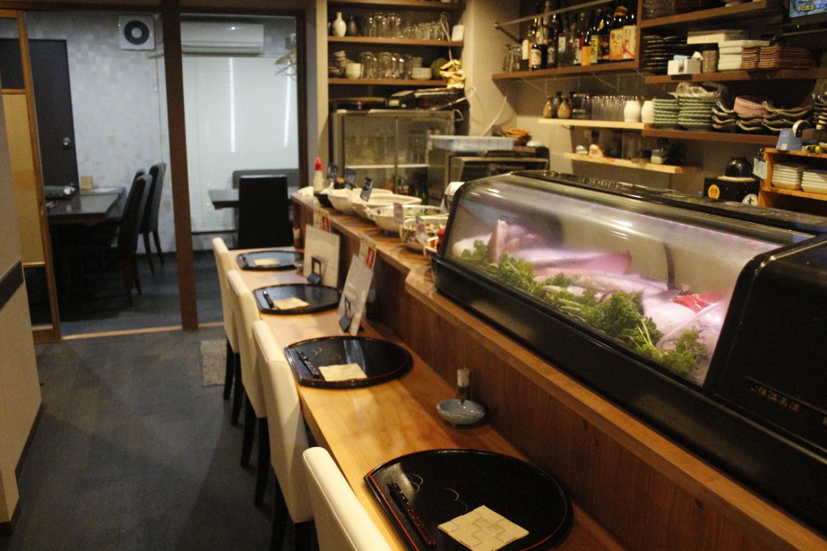 店内は全16席。カウンター席では、気さくな大将との会話を楽しめるのも人気の理由のひとつ。奥にはテーブル席もあり、最大約10名までの宴会にも対応可能です。※貸切は要相談