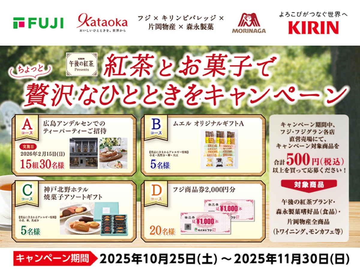 【フジ】10/25(土)-11/30(日) 「フジ×キリンビバレッジ×片岡物産×森永製菓」紅茶とお菓子でちょっと贅沢なひとときをキャンペーン