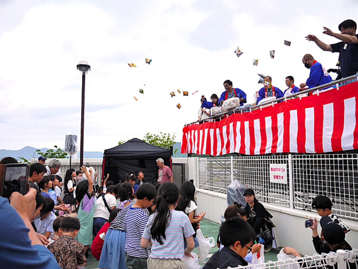 中学生以下を対象とした「お菓子まき」は1日2回開催され、両手いっぱいにお菓子をゲットできる人気企画。