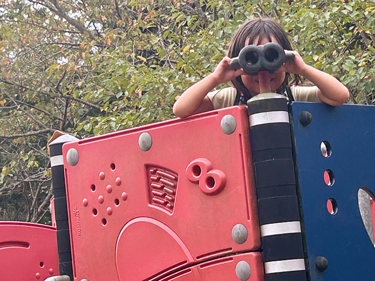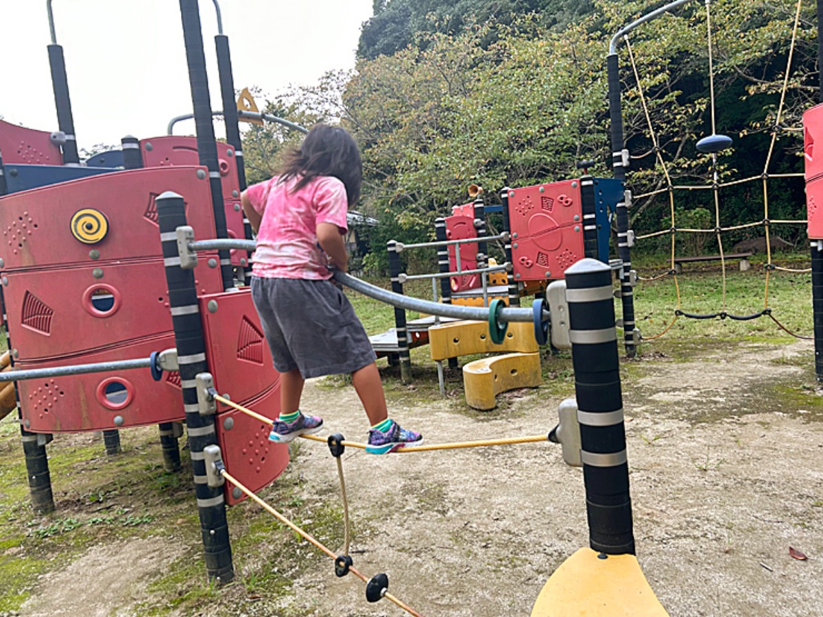 この遊具は少し難しかったようですが、子どもたちはオランウータンのように体を使いながら挑戦して、楽しんでいました。
