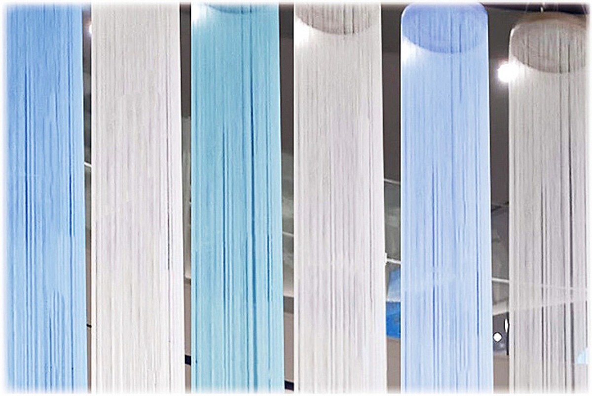 そこに、見る人を明るくさせるような色糸のインスタレーションが、会場全体を幻想的な空間へと変貌させます。