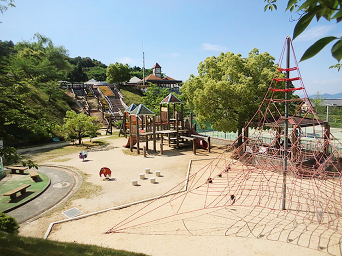 広大な公園は、アスレチックが豊富で、子どもはエキサイティングに、大人はリラックスして過ごせると好評。