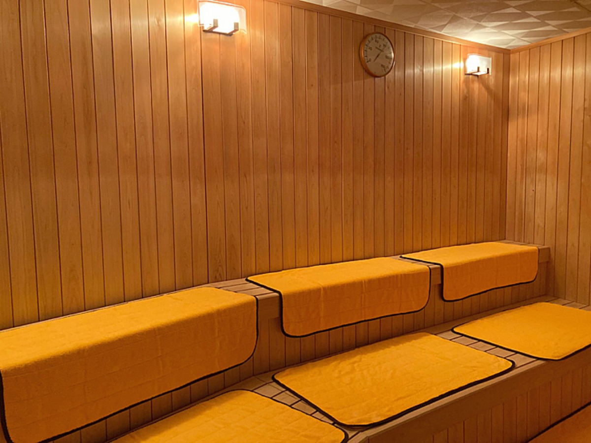 浴室のドライサウナは、最大16名収容できるゆったりサイズ。広いスペースでくつろぎながらリフレッシュしてみてはいかがでしょう。