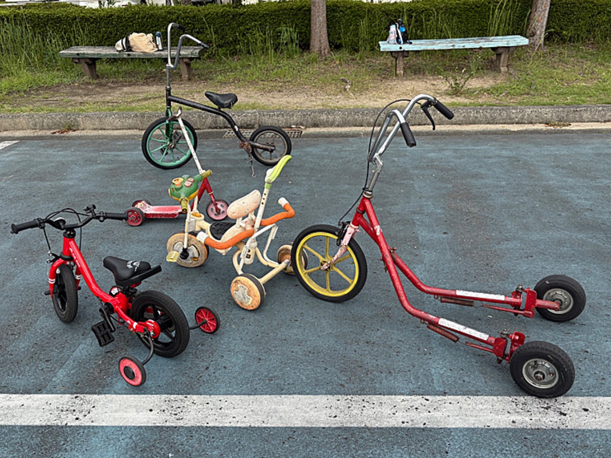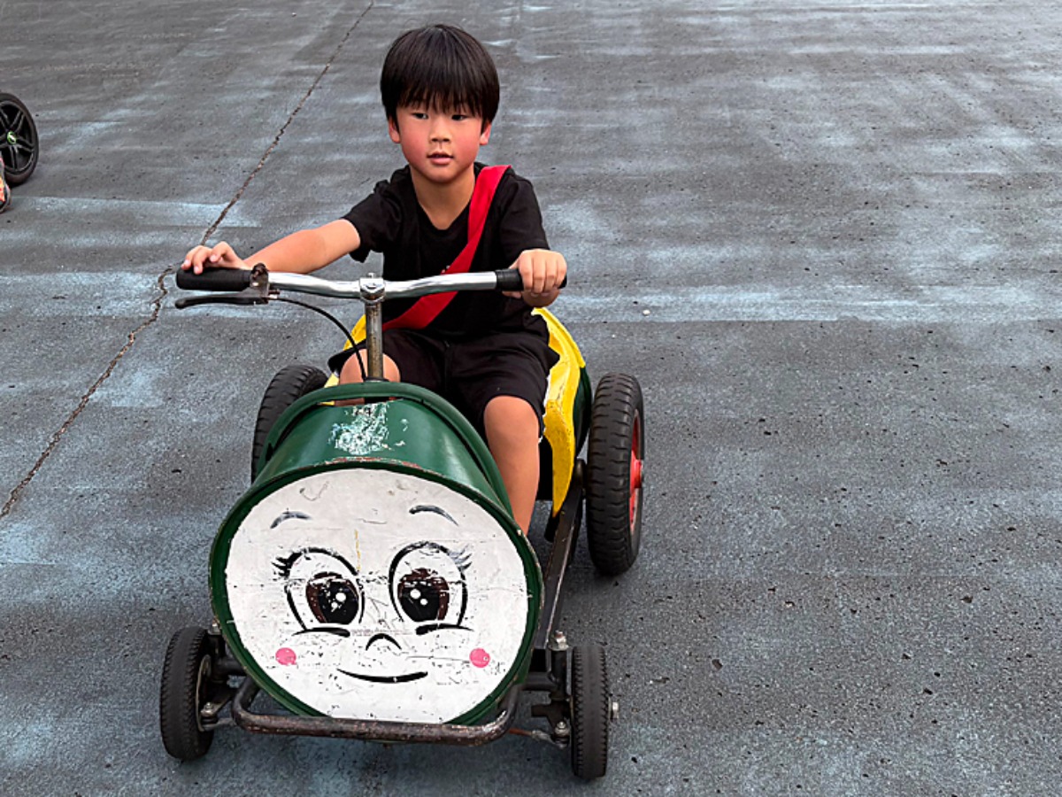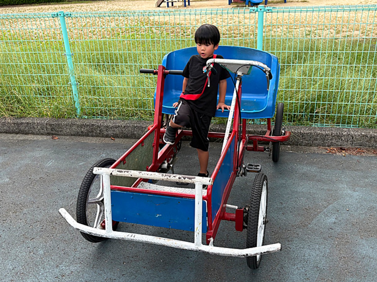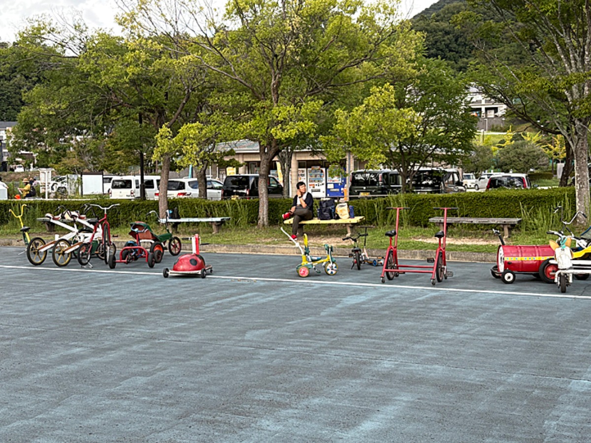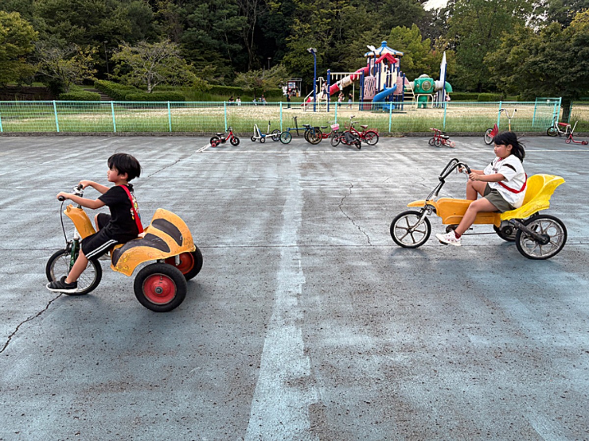 次男は足が届かず乗れなかった自転車もありましたが、自分に合う乗り物を見つけると楽しそうに何周も回っていました。