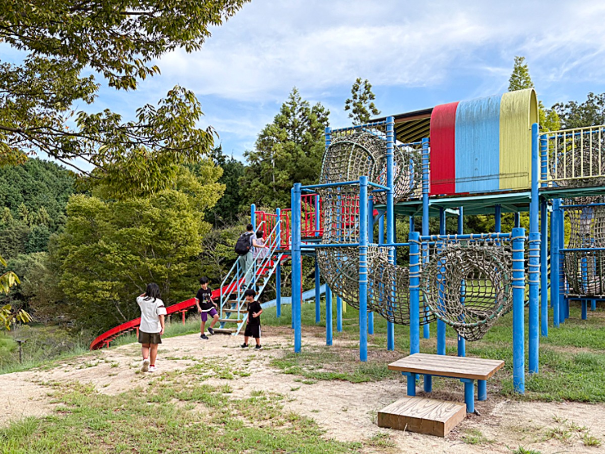 砥部町にある「陶街道ゆとり公園」は、スポーツやピクニック、子どもとの外遊びまで、幅広い世代が楽しめる工夫がいっぱい。
