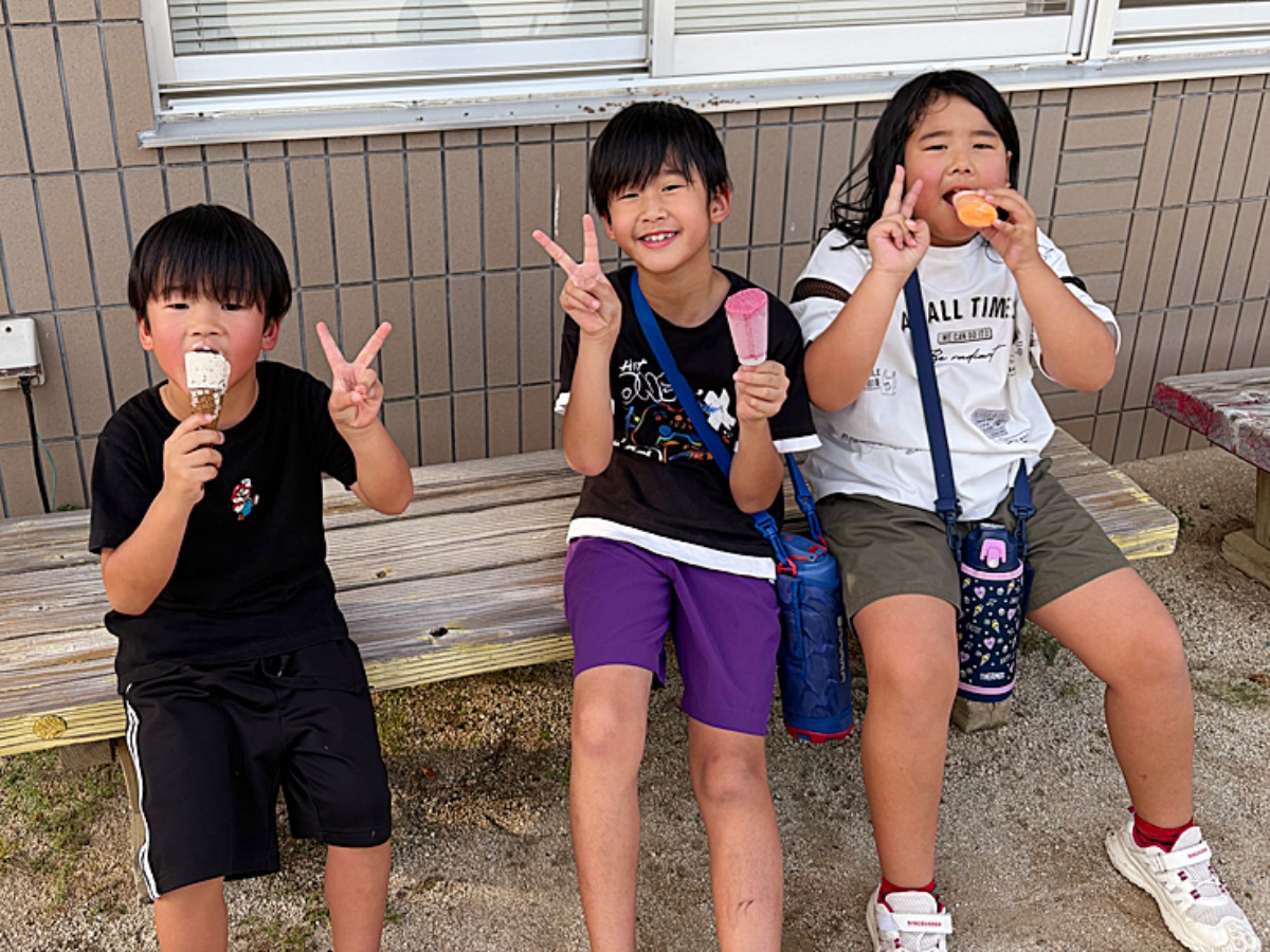 たっぷり遊んだ後は、自動販売機のアイスを堪能。