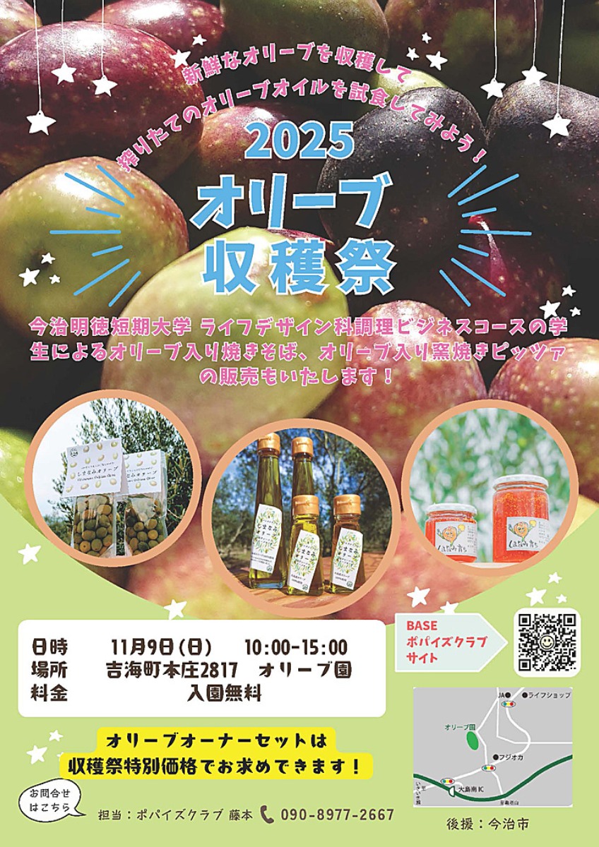 爽やかな秋風が心地よく吹き抜ける瀬戸内・今治市大島の吉海町オリーブ園で、今年は「オリーブ収穫祭」が開催されます!