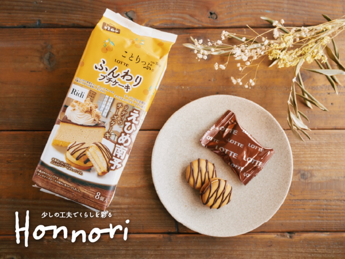 柑橘があしらわれたパッケージは「ことりっぷ えひめ南予」の表紙とのコラボレーション。さらに、同時発売として、新潟の人気カフェ「編むと紡ぐ」監修の「焙じ茶のタルトショコラ」味の小さなチョコパイ。こちらも香ばしい焙じ茶が香るコクのある味わい。「Ridi」のふんわりチーズケーキと合わせて、限定の美味しさを味わってみてください。