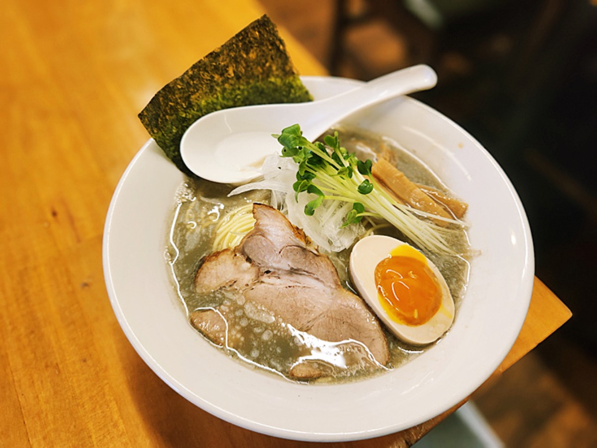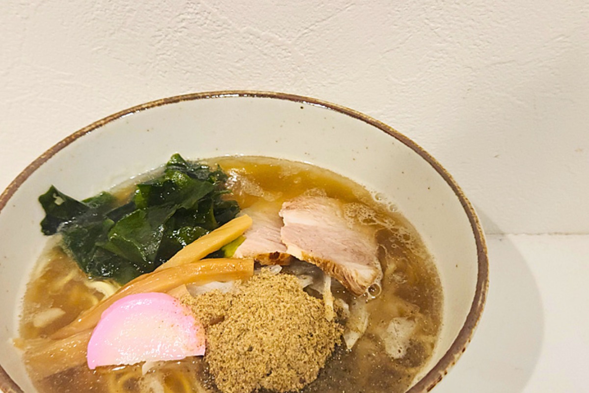 こってり煮干しそばは、見た目はドロッとしていますが、口に入れると煮干しの香りがふわっと広がり、旨みの濃さにびっくり!