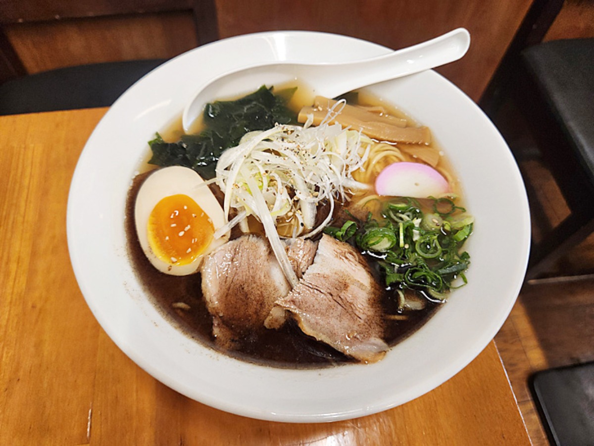 特製中華そばはチャーシュー、白髪ねぎ、半熟卵、かまぼこ、メンマ、わかめなど具だくさんで豪華!
