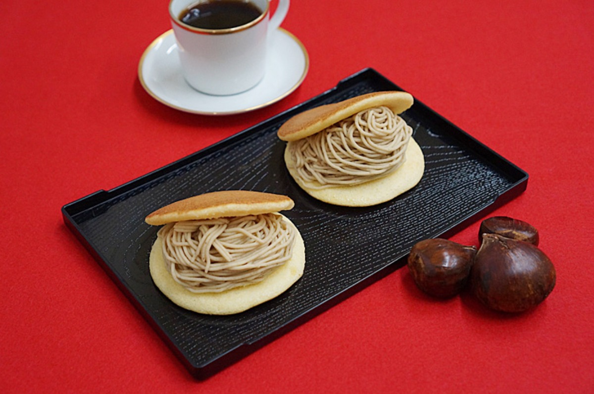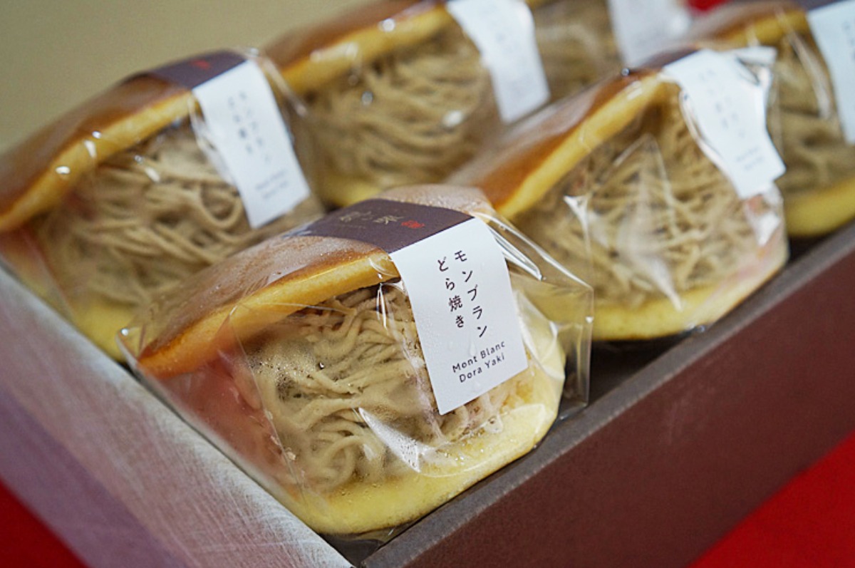 ふわふわ生地に栗ペーストをたっぷり挟んだ「モンブランどら焼き」も人気の一品。