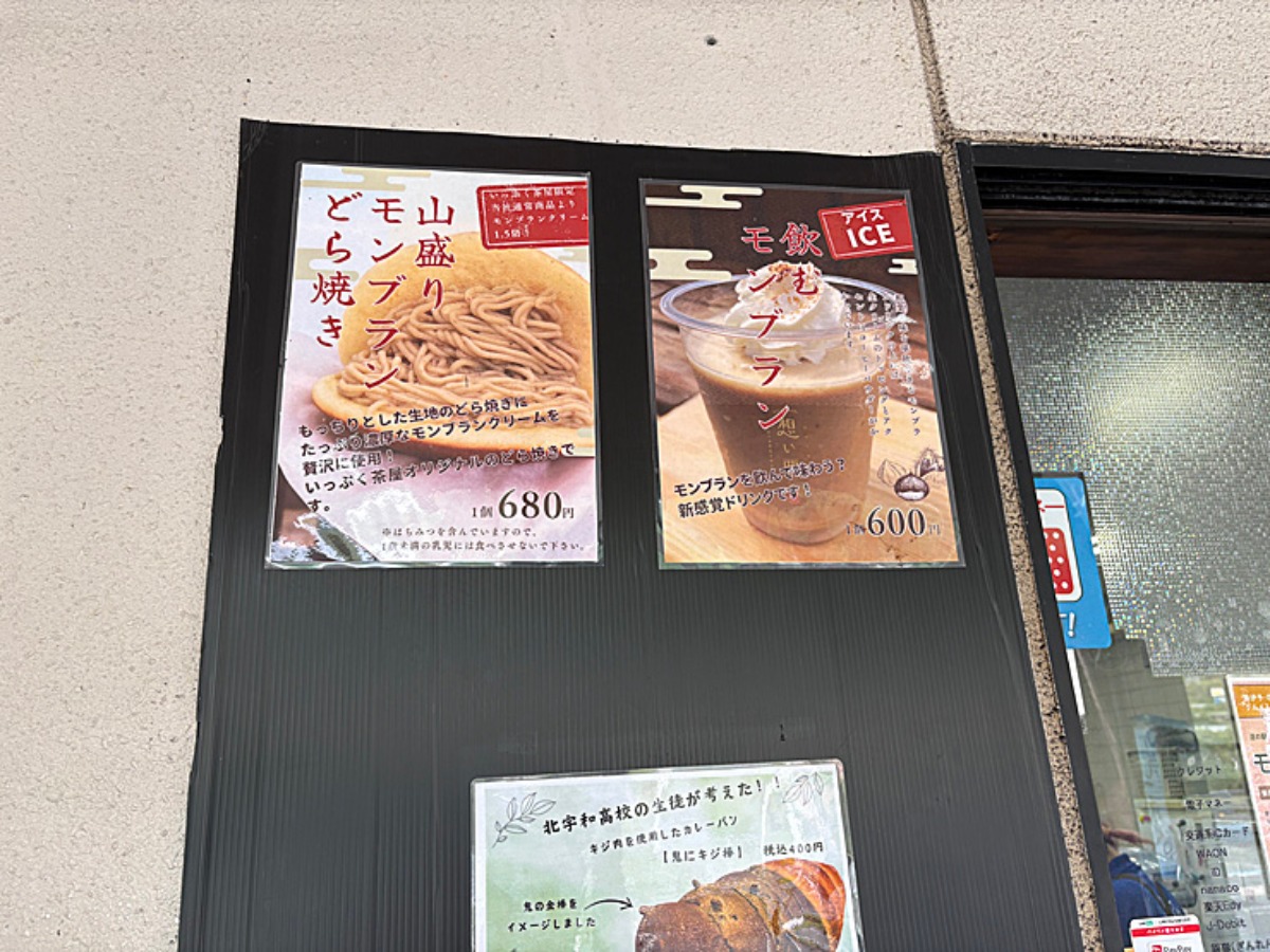 道の駅併設の「いっぷく茶屋」では、ふわふわの生地に栗ペーストをたっぷり挟んだ「モンブランどら焼き」も食べられます。