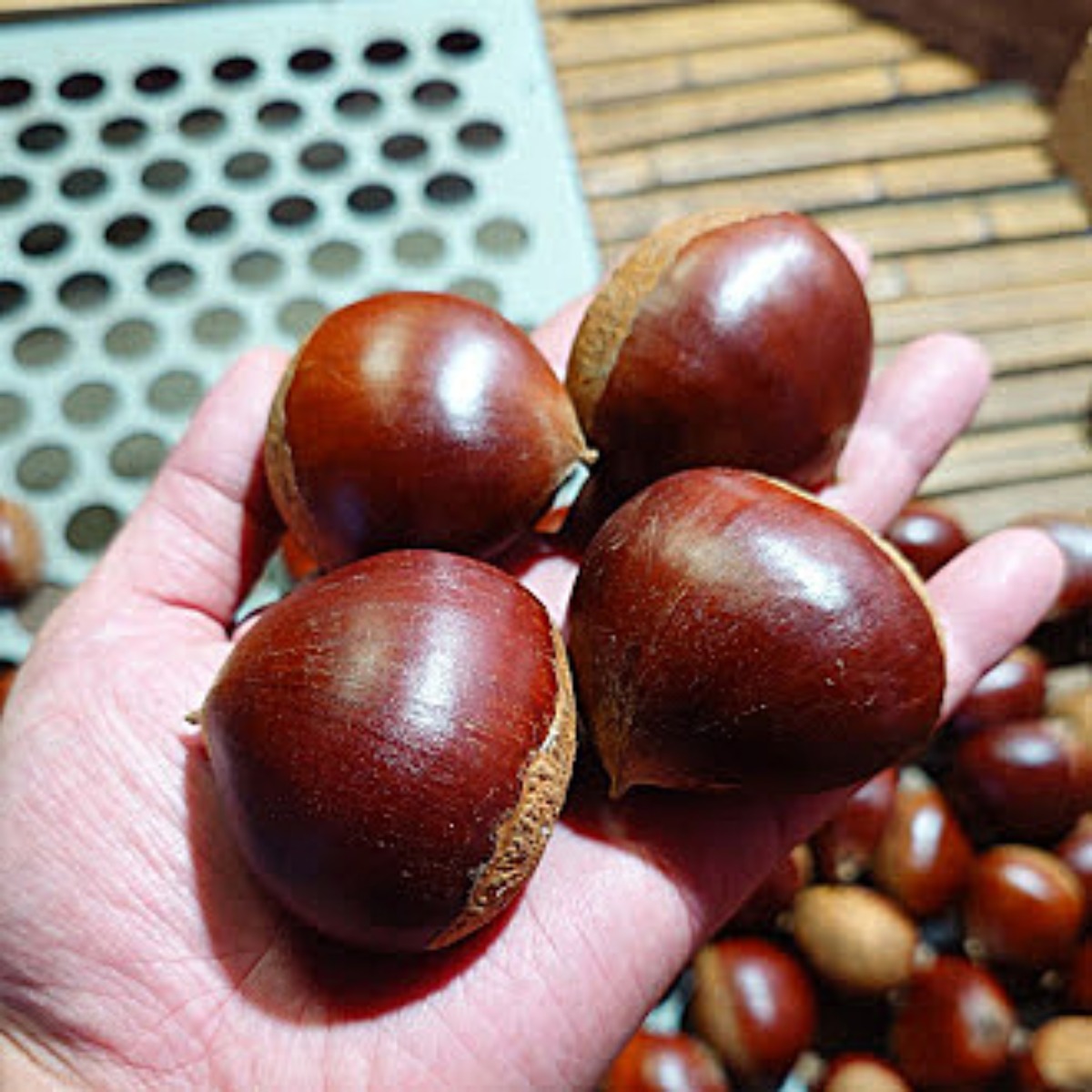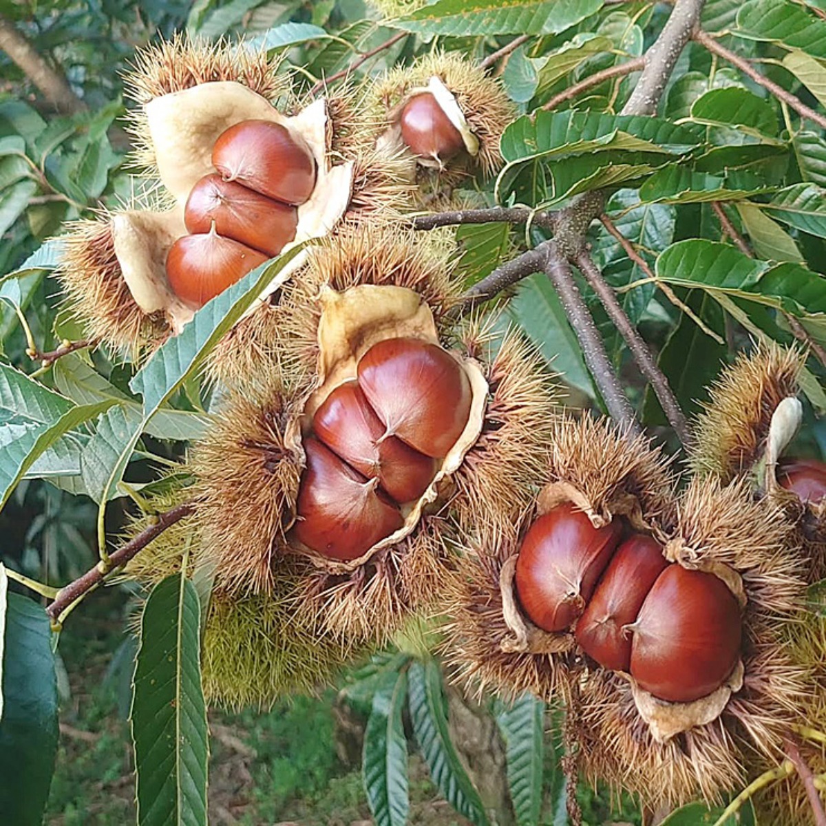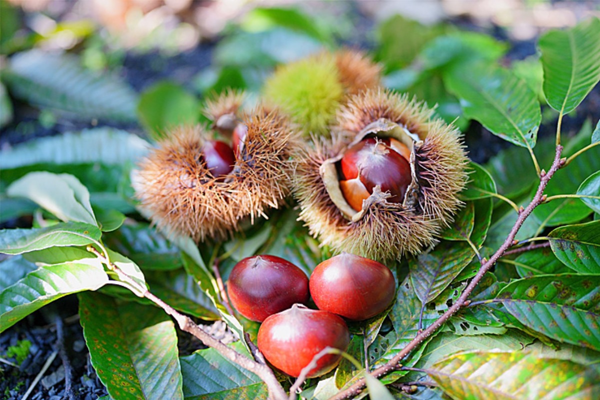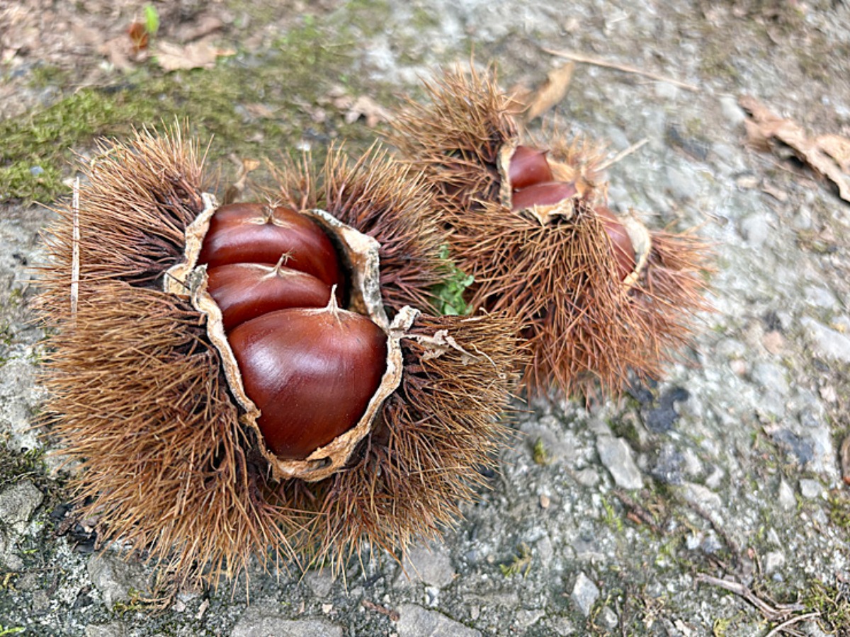 収穫の時期になると、木で熟した栗が自然に落ちてきます。