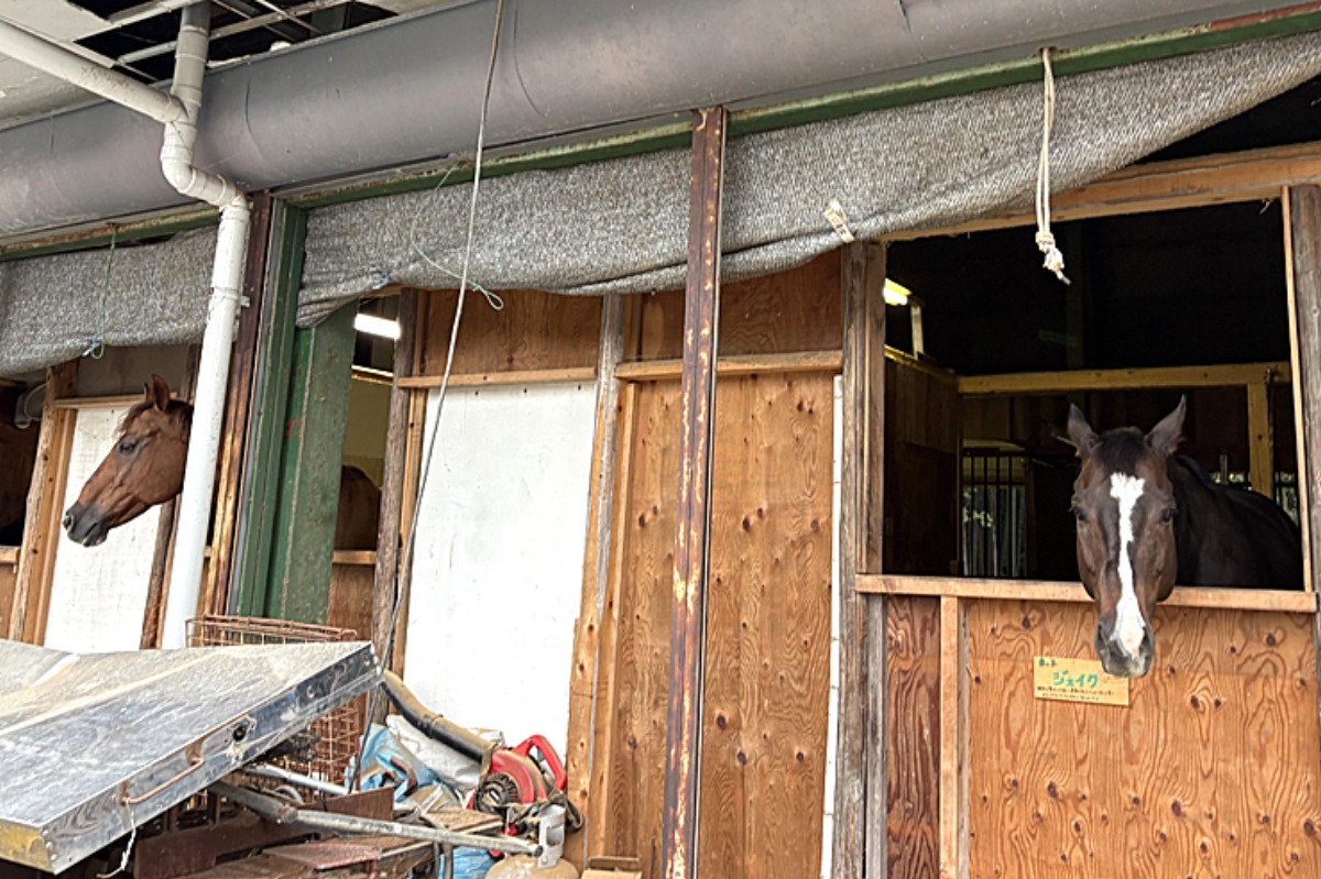 奥の畜舎は、地元の乗馬クラブに貸し出しているそうで、元競走馬の馬も住んでいます。
