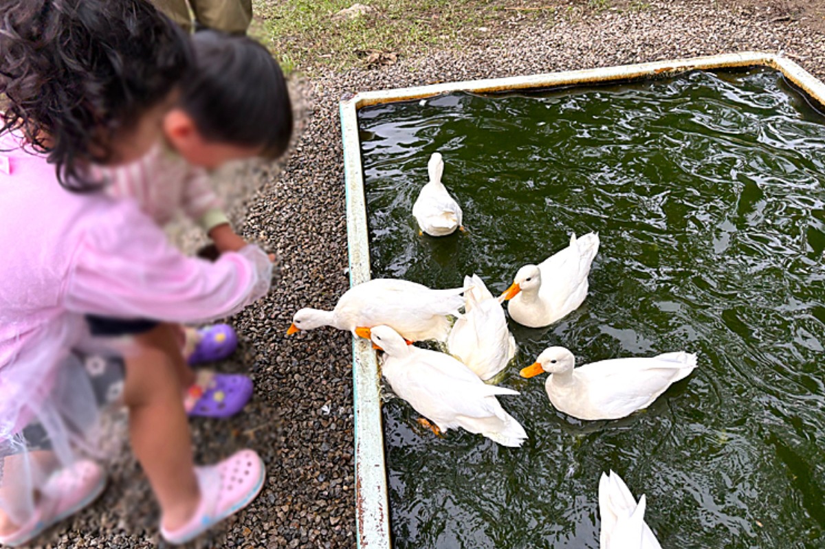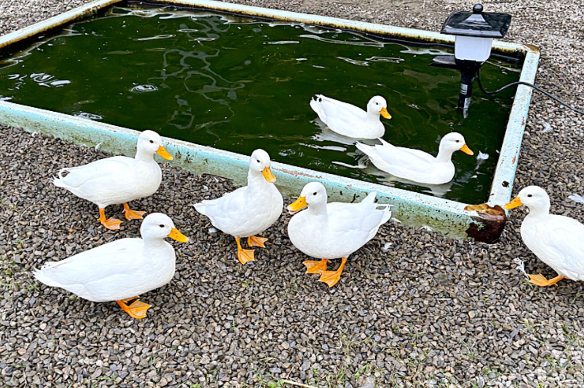 筆者たちが来ると、遠くから早足でお出迎えしてくれたアヒル。