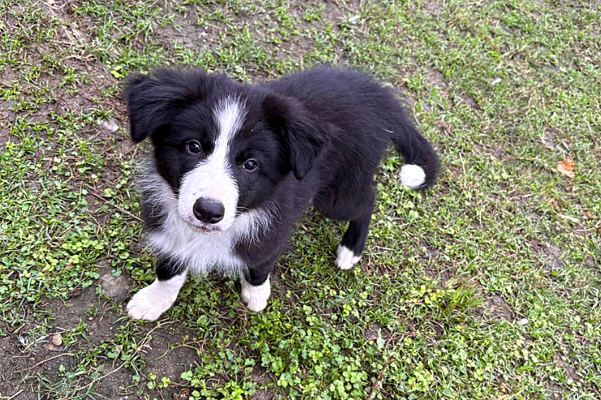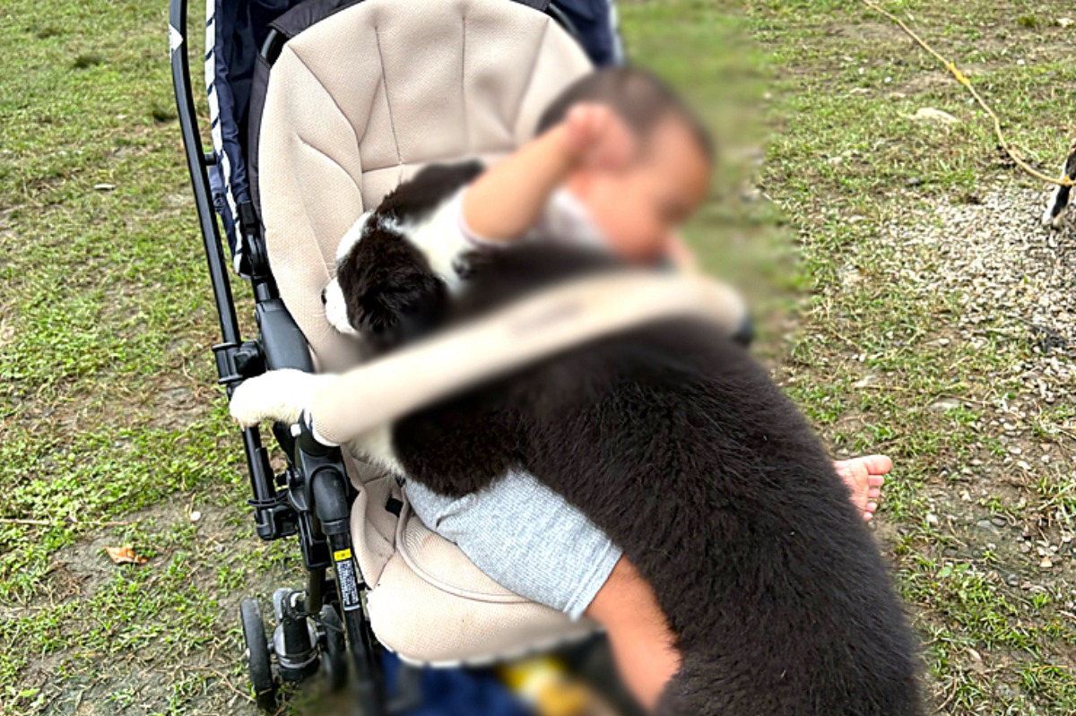 コリーのパピーが、遊びたいあまりに、末っ子に突き刺さってしまいました。