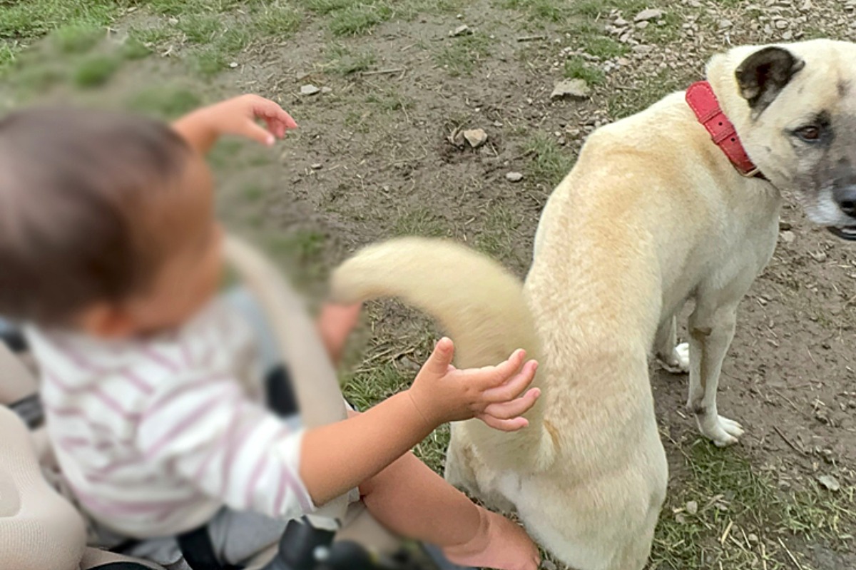 敢えて近くでしっぽを振り、こどもたちを楽しませる、やまちびのエンターテーナーです。