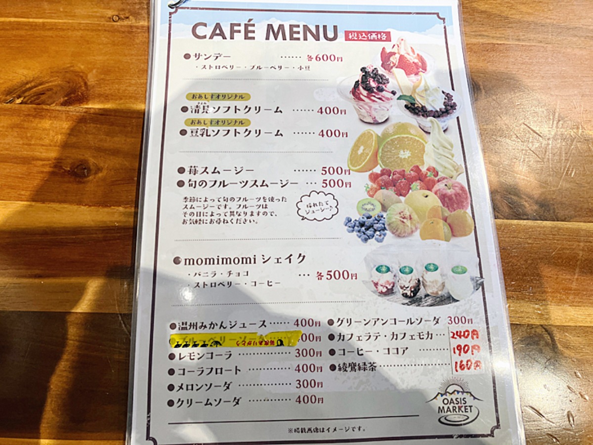 結局、おあしす市場おすすめの豆乳ソフトクリームを注文。