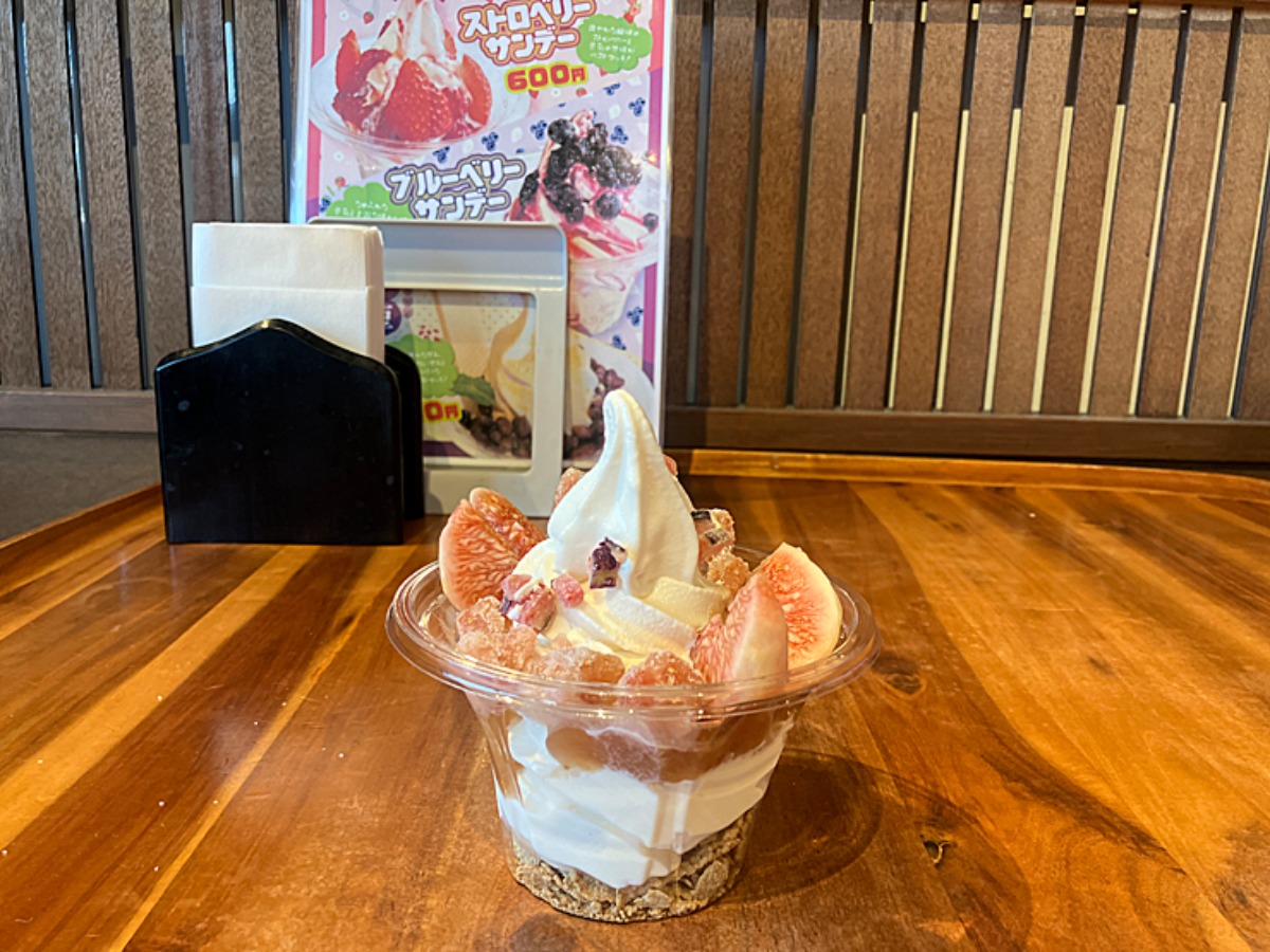 いちじくサンデーは、甘い生いちじくに、しゃりっとした冷凍いちじく、更にいちじくソースがかかっていました。