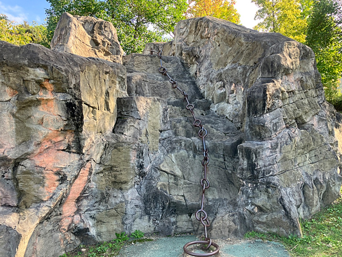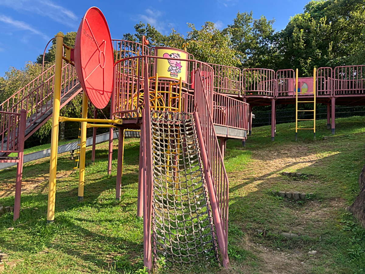 太い鎖を使って登るアスレチック風の遊具がありました。