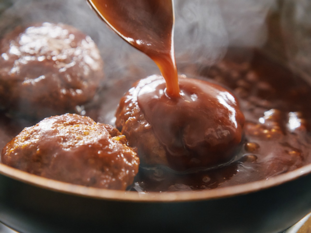焼かずにそのまま煮込める手軽さが◎。ふっくらとやわらかなハンバーグに仕上がります。捏ねる時間を考慮しても20分程度あれば完成しますので、時間がない朝でもお弁当のおかずになんていうのも可能です。