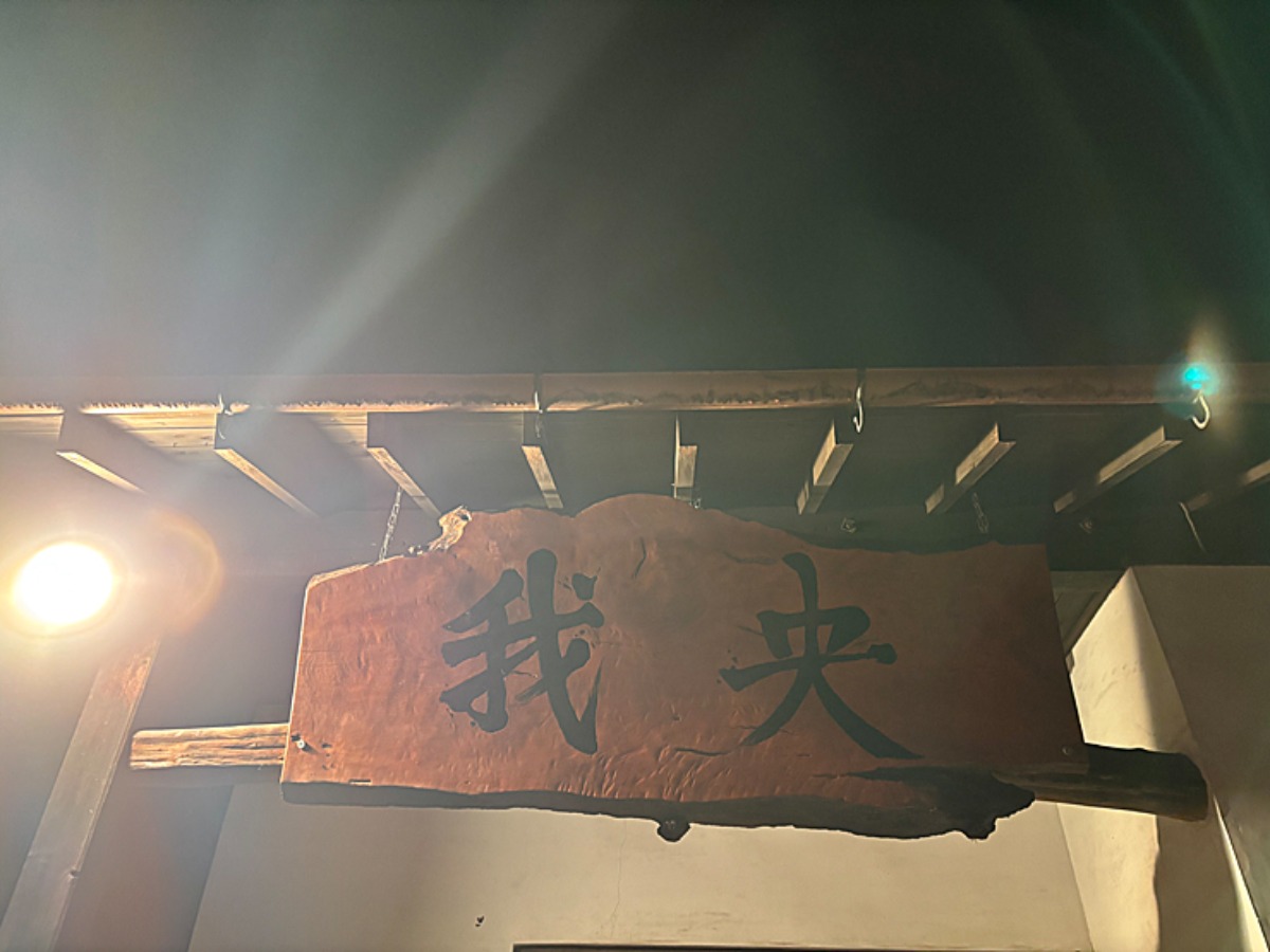 夜に訪れたので暗いですが、幻想的な雰囲気の一枚板の看板です。