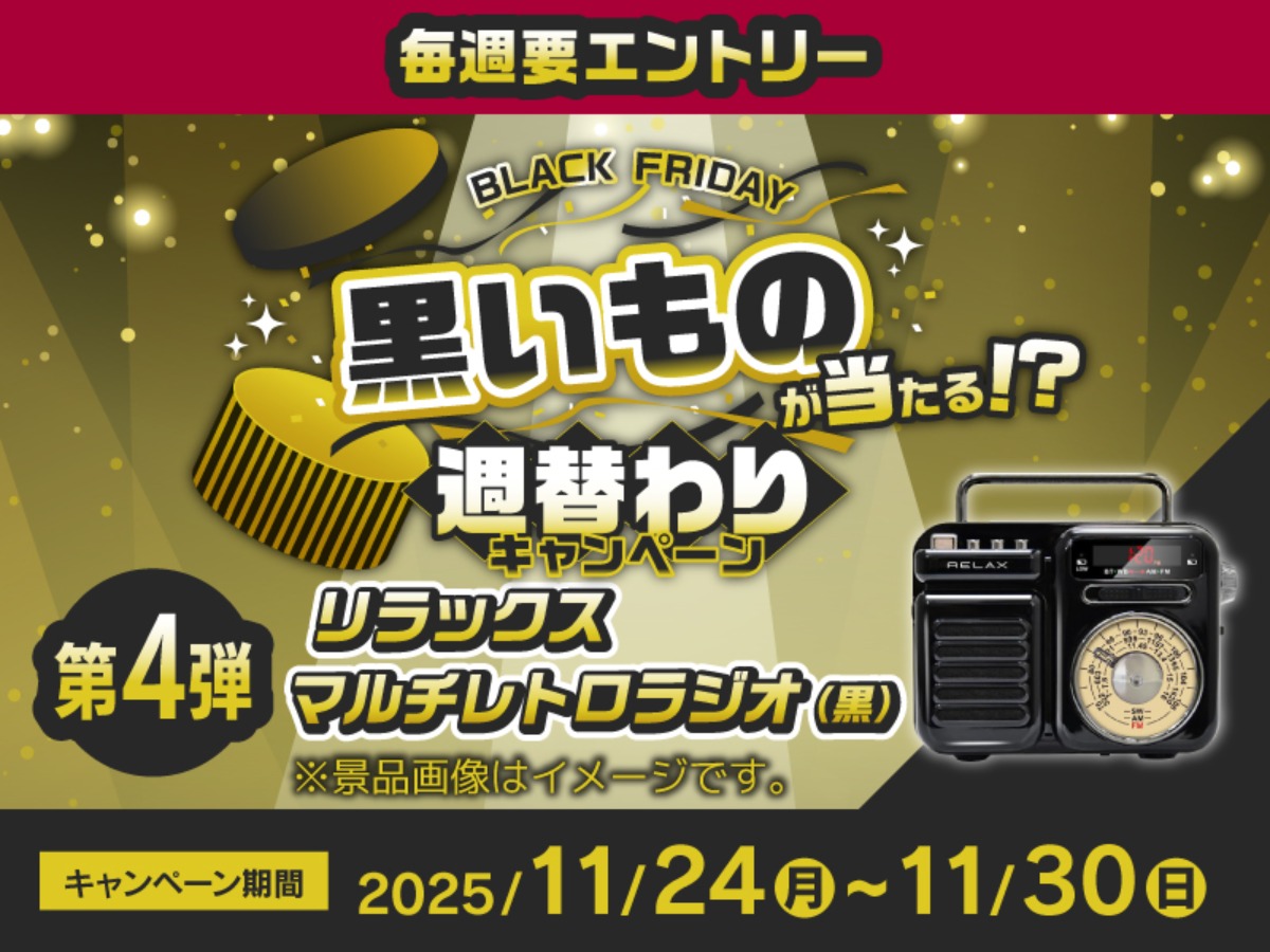 【フジ | 11/24(月)-11/30(日)】ブラックフライデー 黒いものが当たる!?週替わりキャンペーン<第4弾>