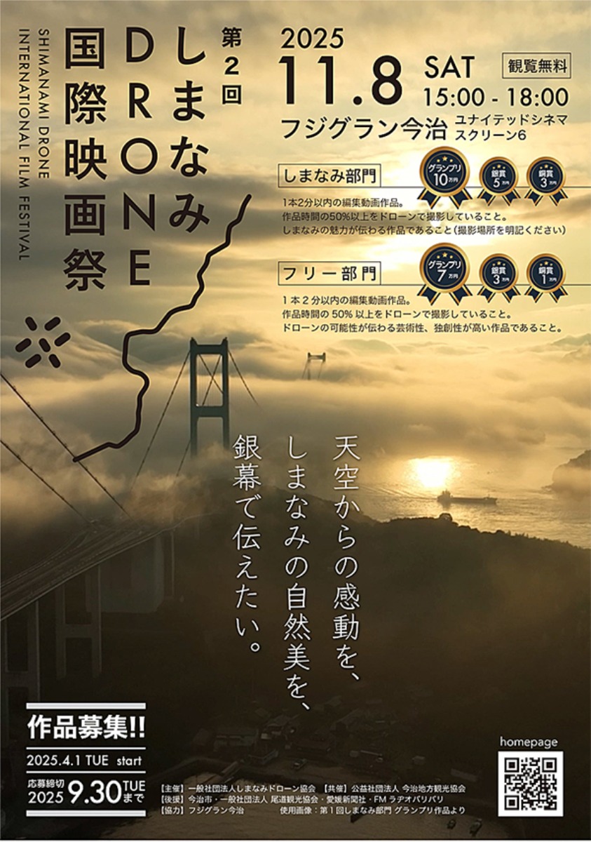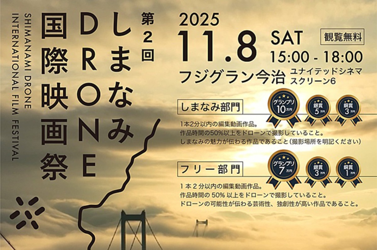 特に「しまなみ部門」は、瀬戸内の多島美や歴史的な街並み、豊かな自然が空からの視点で新たな表情を見せ、観客の感動を誘うこと間違いなしです♪