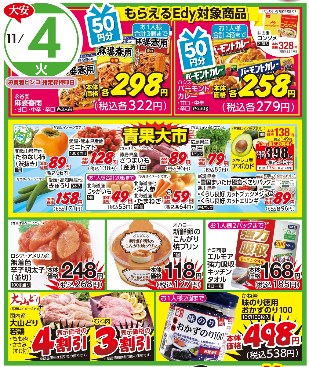 【広告売り出し期間】11/3(月・祝)~11/6(木)