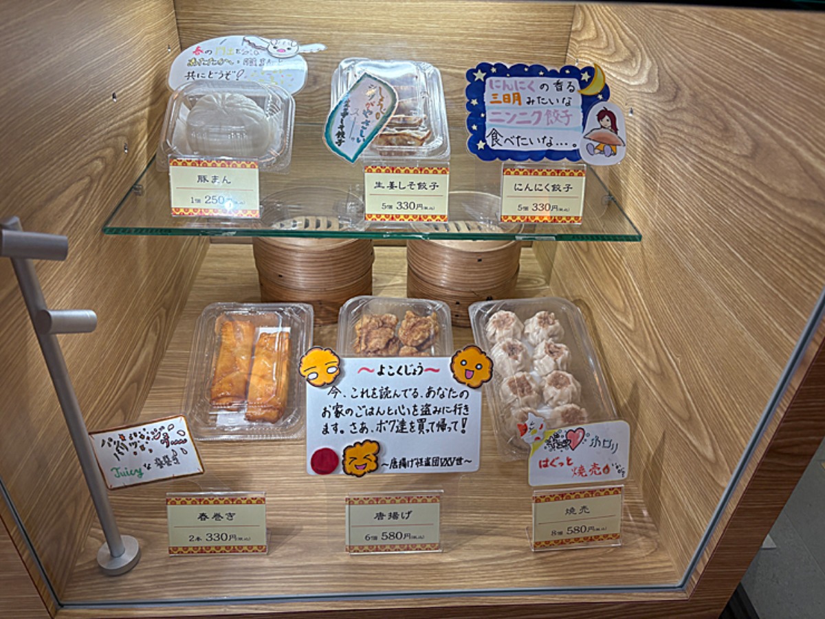 豚まんや餃子、唐揚げなど、テイクアウトメニューも充実しています。