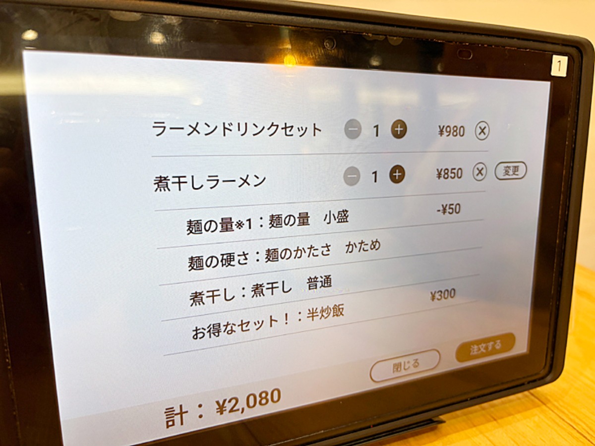 スープの濃さや麺の硬さ、麺の量まで選べるのが特徴で、自分好みにカスタマイズできるのがうれしいポイントです。