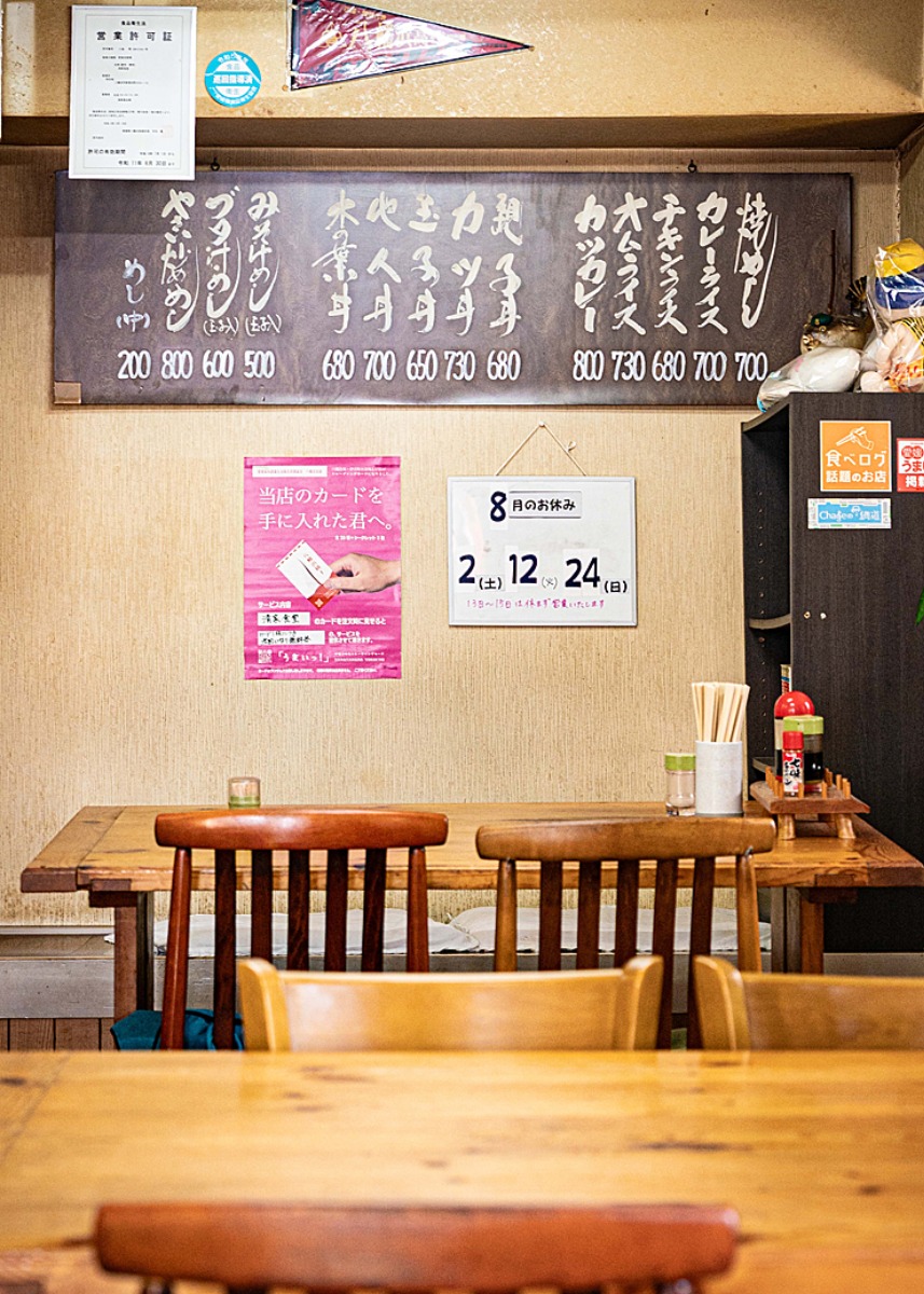 店内はテーブル席と小上がり席があり、 昔ながらの趣が感じられる落ち着いた空間