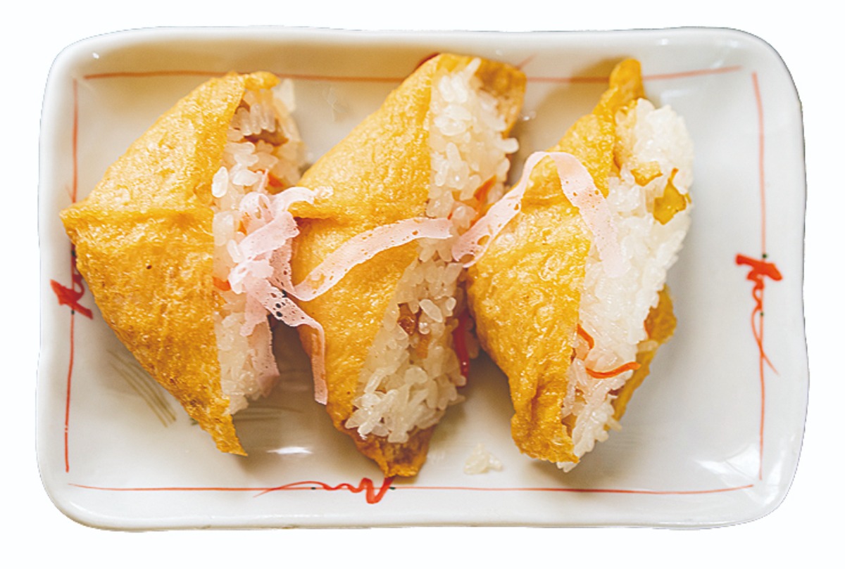 女性の手に馴染む形で、女将が代々握り続けるいなりずし。具はちくわや蒲鉾、ニンジンなど