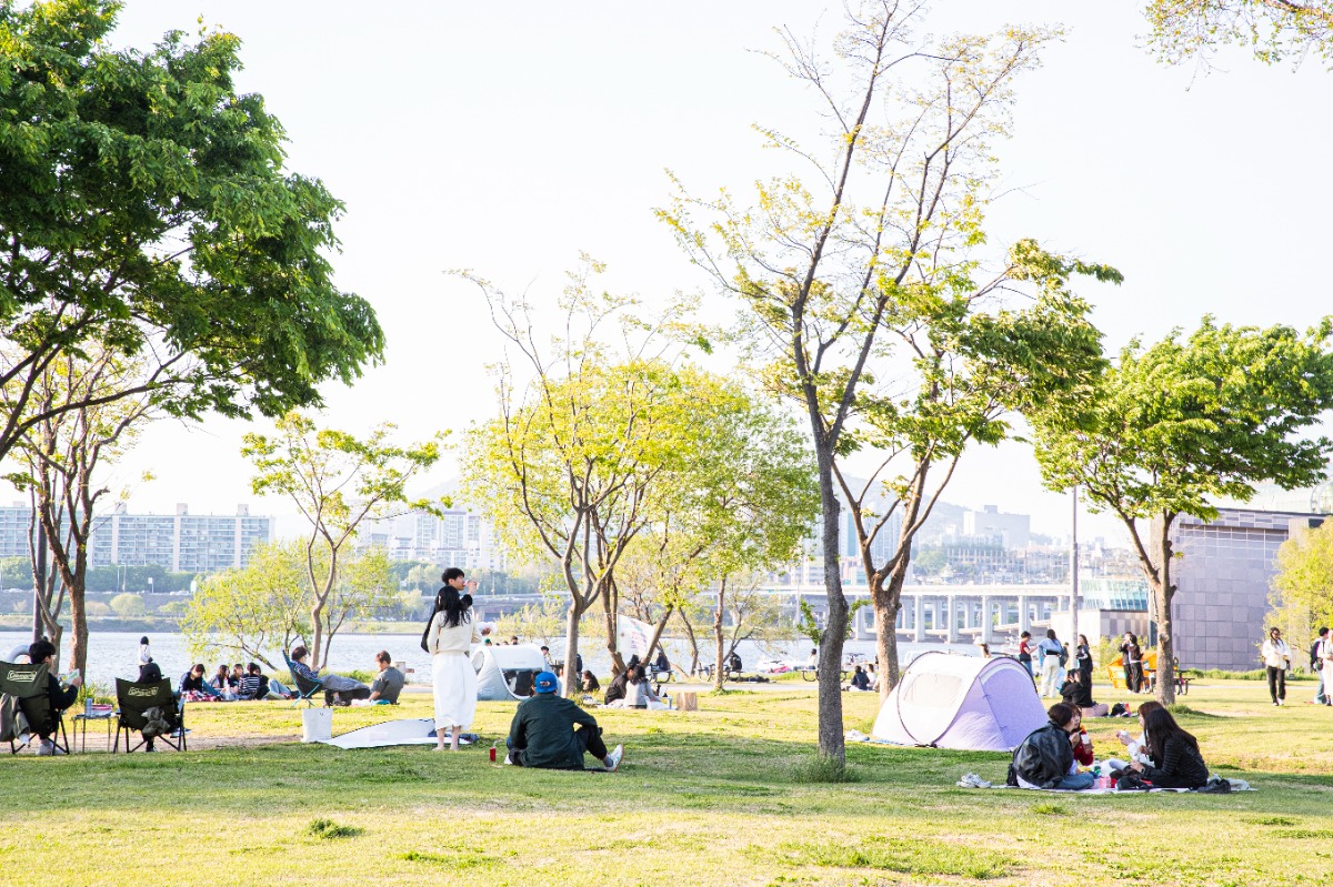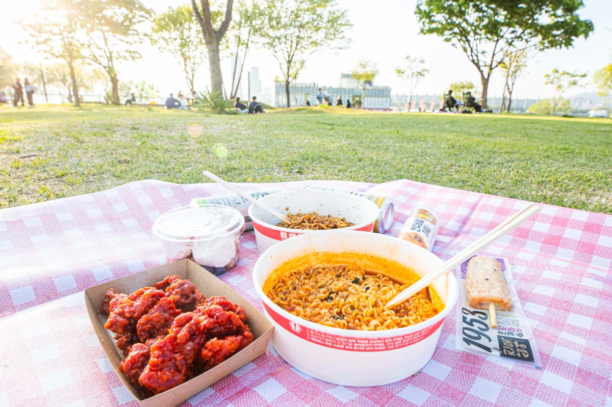 コンビニやチキン店もあり、「漢江ラーメン」やチキンとビールで「漢江チメク」を楽しむのがトレンドで、辺りはピクニックを楽しむ人たちがたくさんいました。