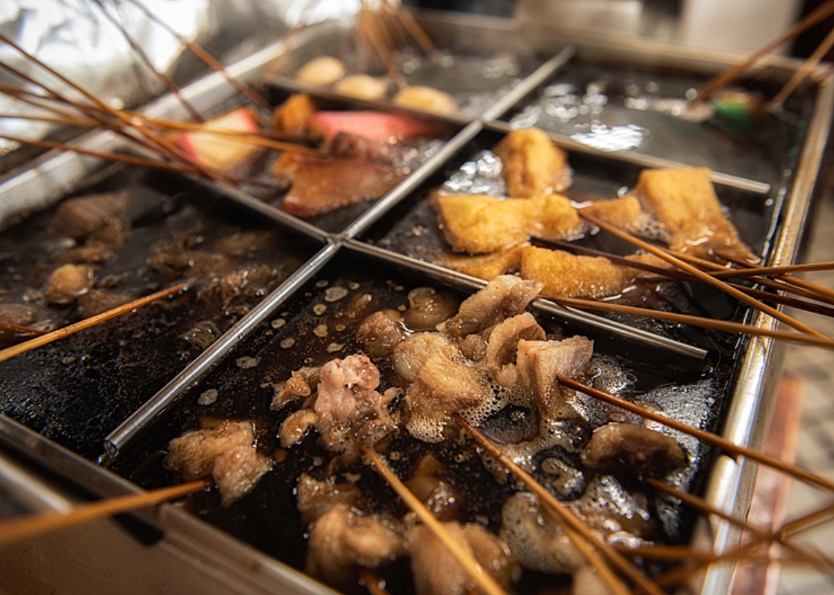カウンターの一角にある、セルフのおでんは1本110円。 おでんをつまみに昼飲みを楽しむ人も
