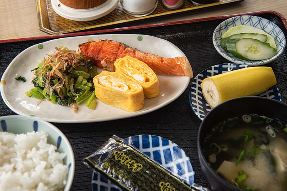 焼鮭と玉子焼き、おひたしに漬 物。1日の始まり、元気をチャージできる至福の朝ごはん
