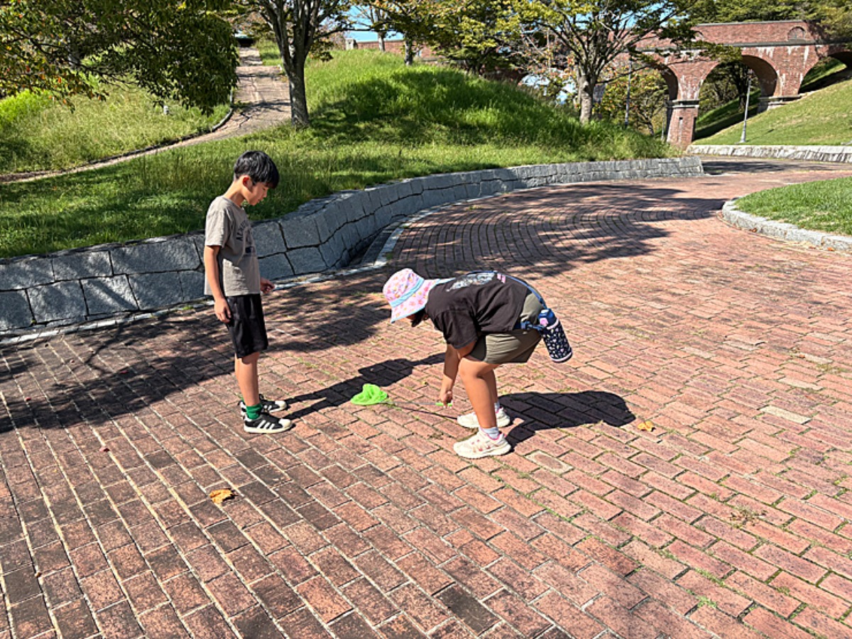 子どもたちは食べ終わると虫を探しに走りだしていきました。